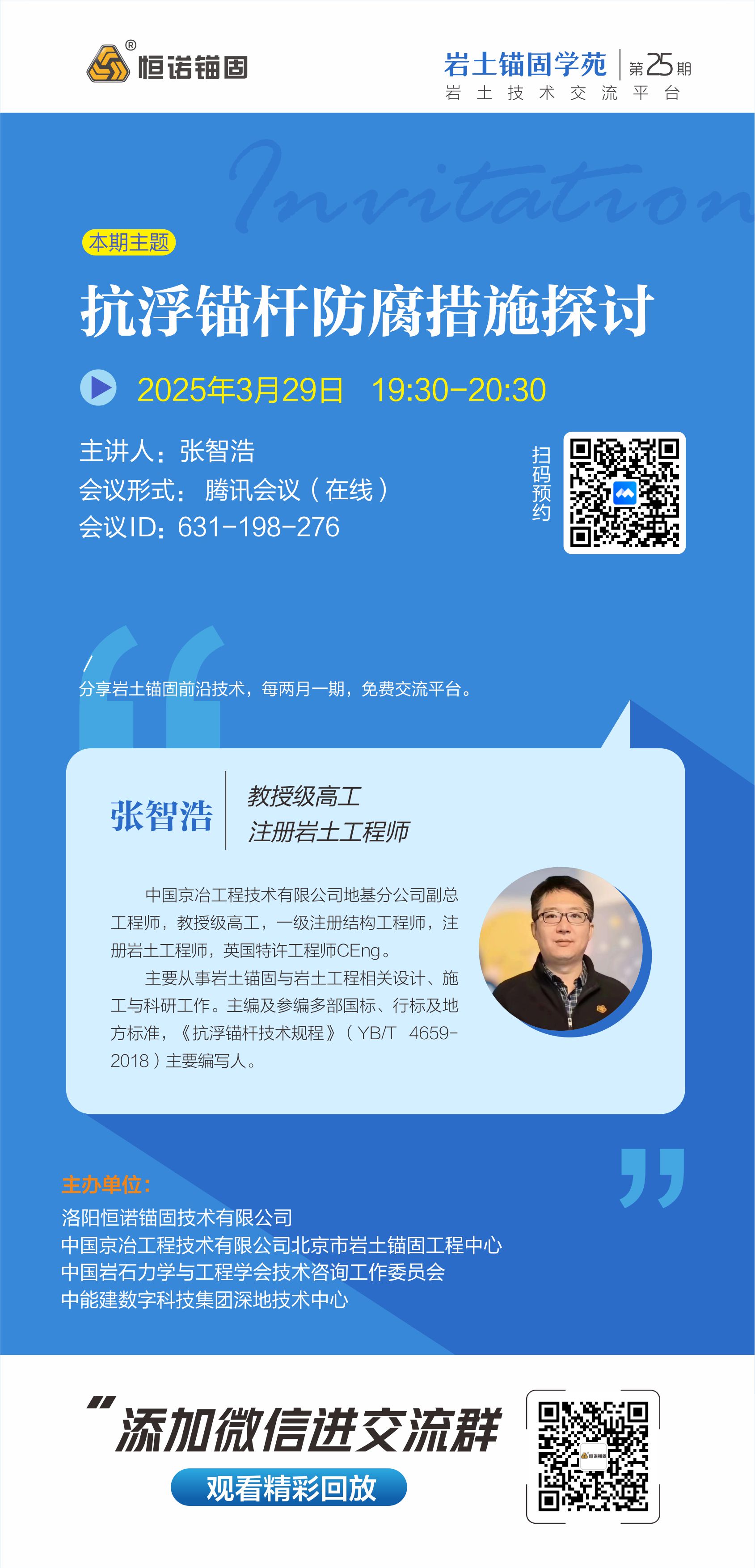 巖土錨固學(xué)苑將于2025年11月22日(周六)19:30-20:30舉辦第29期,活動(dòng)以線(xiàn)上會(huì)議形式舉行。...