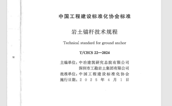 由中國(guó)工程建設(shè)標(biāo)準(zhǔn)化協(xié)會(huì)批準(zhǔn)的《T/CECS22-2024巖土錨桿技術(shù)規(guī)程》(以下簡(jiǎn)稱“新《規(guī)程》”)正式發(fā)布。該規(guī)程于2024年11月12日發(fā)布,并將于2025年4月1日起正式施行,全面替代原《CECS22:2005》版本。此次修訂與發(fā)布是我國(guó)巖土錨固工程技術(shù)領(lǐng)域標(biāo)準(zhǔn)化建設(shè)的一項(xiàng)重要成果,對(duì)提升行業(yè)技術(shù)水平、保障工程質(zhì)量安全、促進(jìn)行業(yè)健康發(fā)展具有重要指導(dǎo)意義。