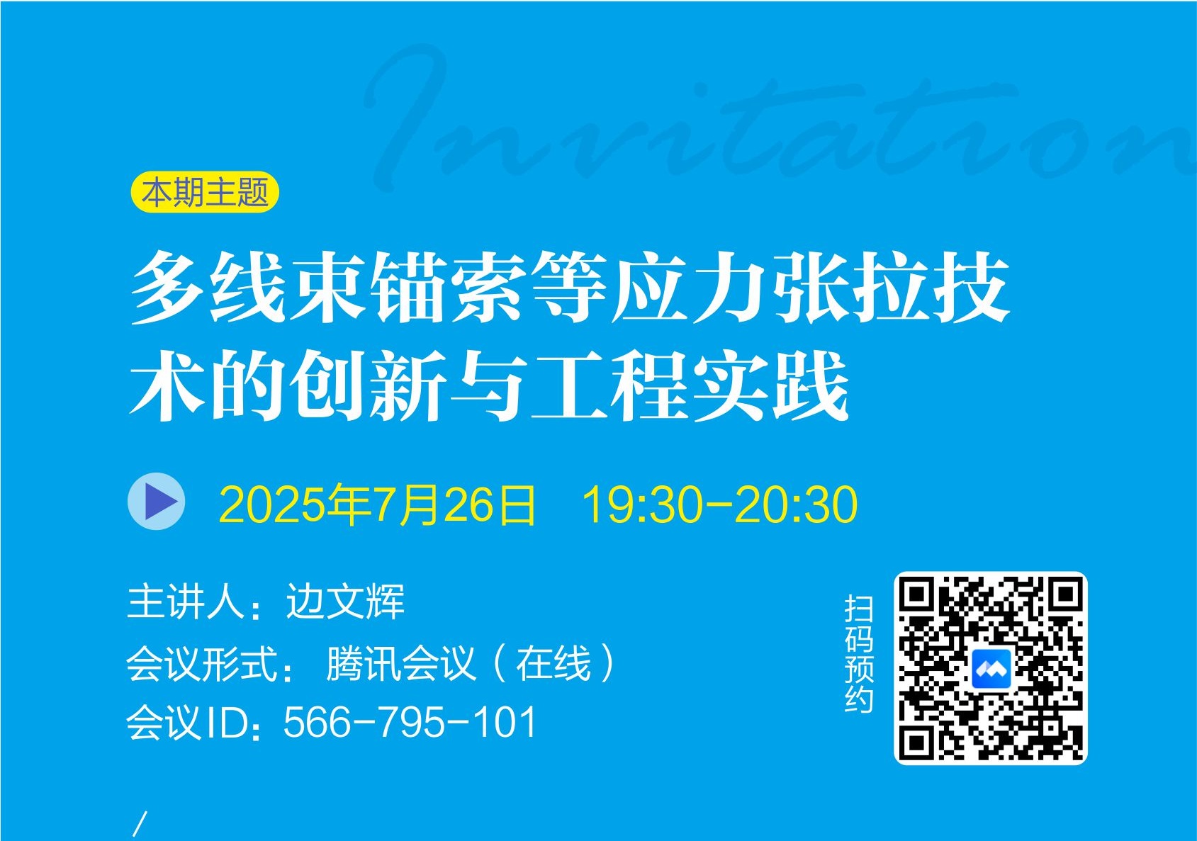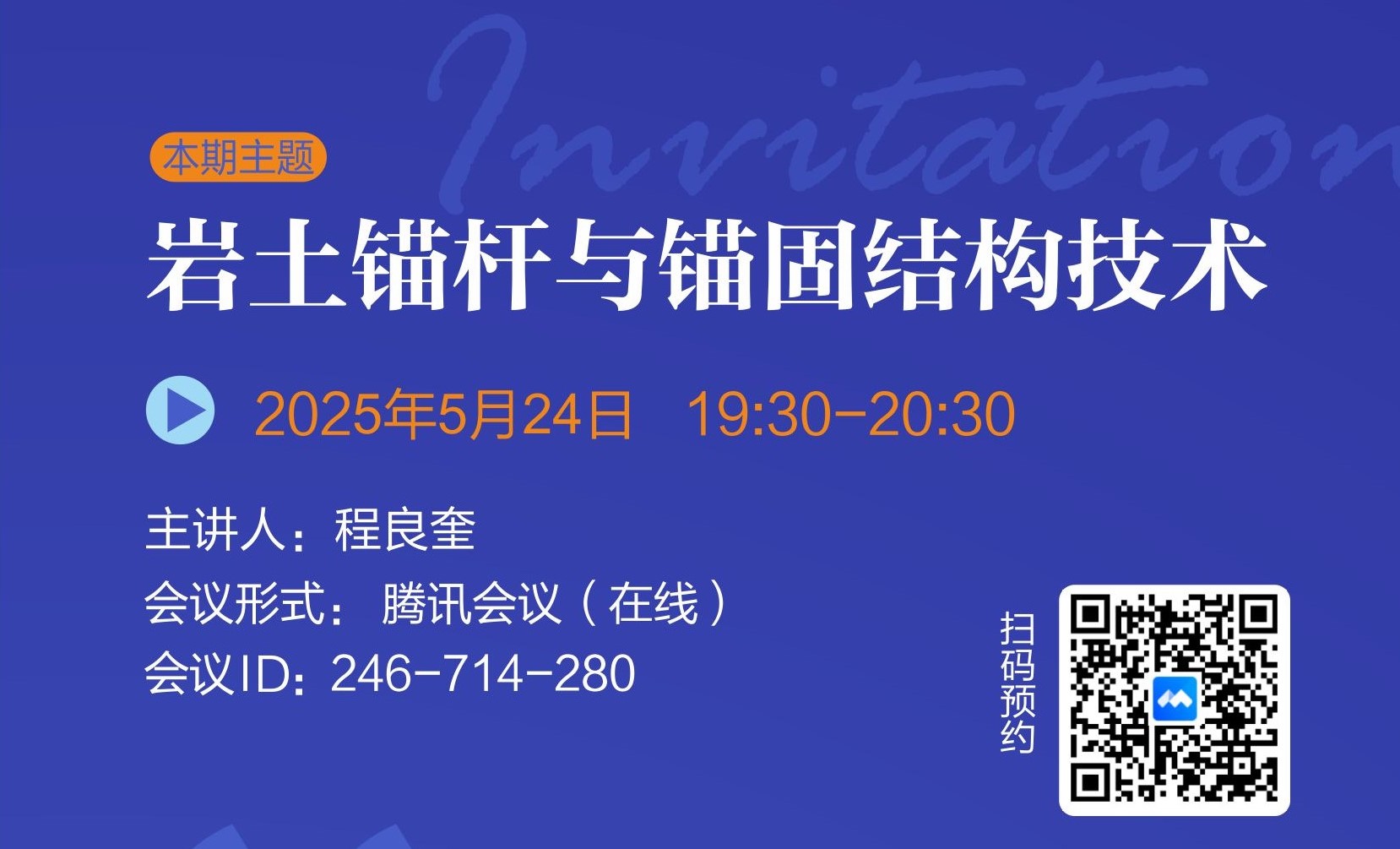發(fā)布日期:2024-11-28 09:53巖土錨固學(xué)苑將于2024年9月28日(周六)19:30-20:30舉辦第21期,本期主題:交通基礎(chǔ)設(shè)施數(shù)智防災(zāi)減災(zāi)典型案例剖析,歡迎廣大巖土錨固領(lǐng)域愛(ài)好者參與交流。 會(huì)議形式: 騰訊會(huì)議(在線) 會(huì)議ID: 897-470-483 本期會(huì)議二維碼(騰訊...