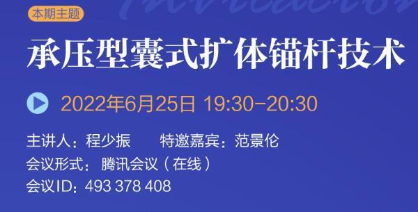 發(fā)布日期:2021-10-30 15:31巖土錨固學(xué)苑將于2022年6月25日(周六)19:30-20:30舉辦第2期,本期主題:承壓型囊式擴(kuò)體錨桿技術(shù),歡迎廣大巖土錨固領(lǐng)域愛(ài)好者參與交流。...
