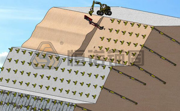 在在錨桿尺寸與傾角上,兩者之間存在著顯著差異,錨桿直徑較大(通常100mm-300mm)之間,旨在保證其作為受拉構(gòu)件的錨固強(qiáng)度。其傾角通常為15°-35°,以利于將拉力傳遞至更深層的穩(wěn)定巖土層。相比之下,土釘?shù)闹睆奖容^?。ㄍǔ?0-50mm),傾角也比較平緩(一般為5°-20°),以便適應(yīng)原位加筋體的受力特性。